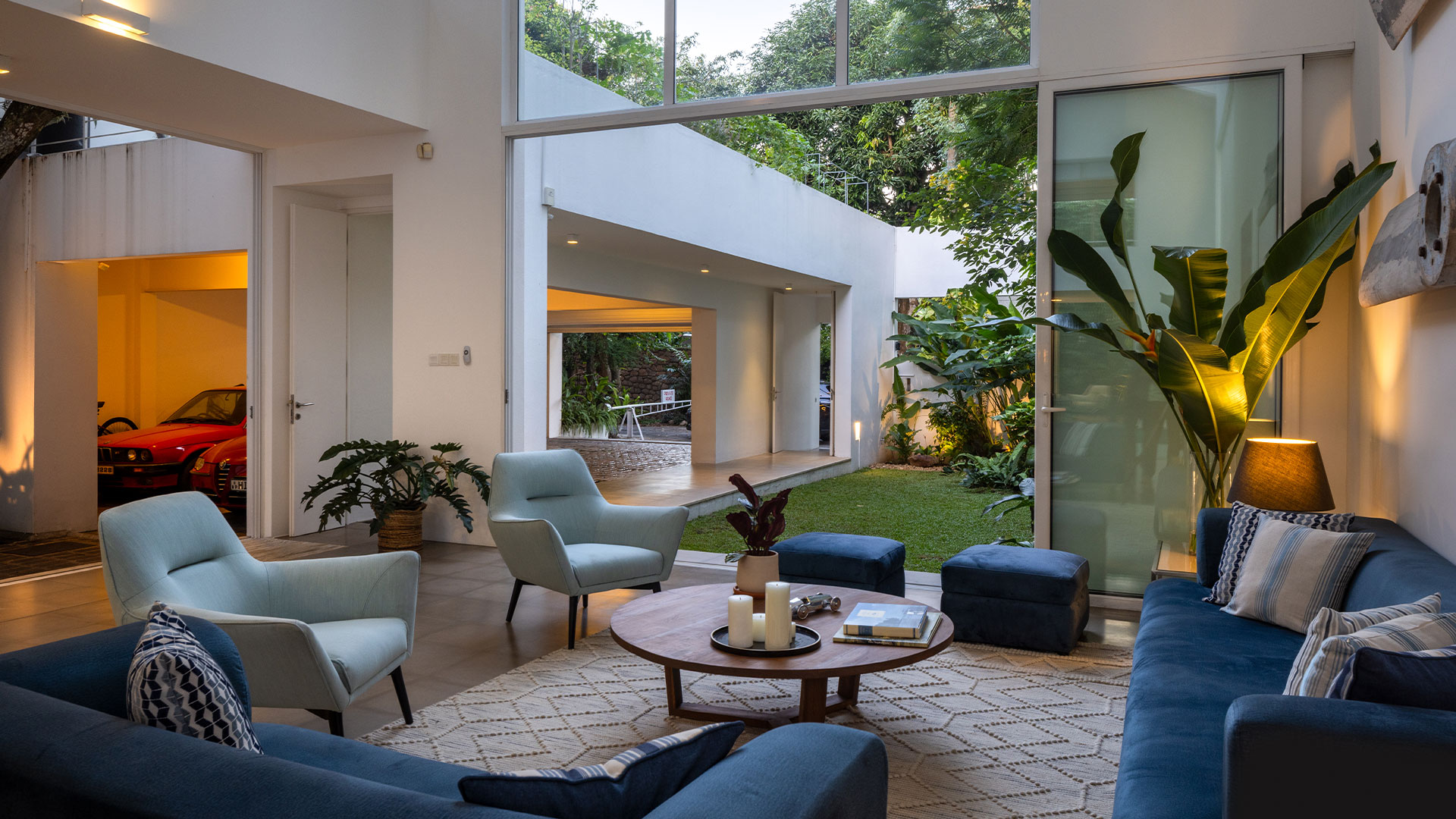 Bold yet understated design elements define the interiors — a sculptural staircase becomes a central