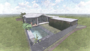 Sustainable principles underpin the home’s concept: passive solar orientation, natural cross-ventilation, and repurposed timbers lend warmth and environmental sensitivity to the design.